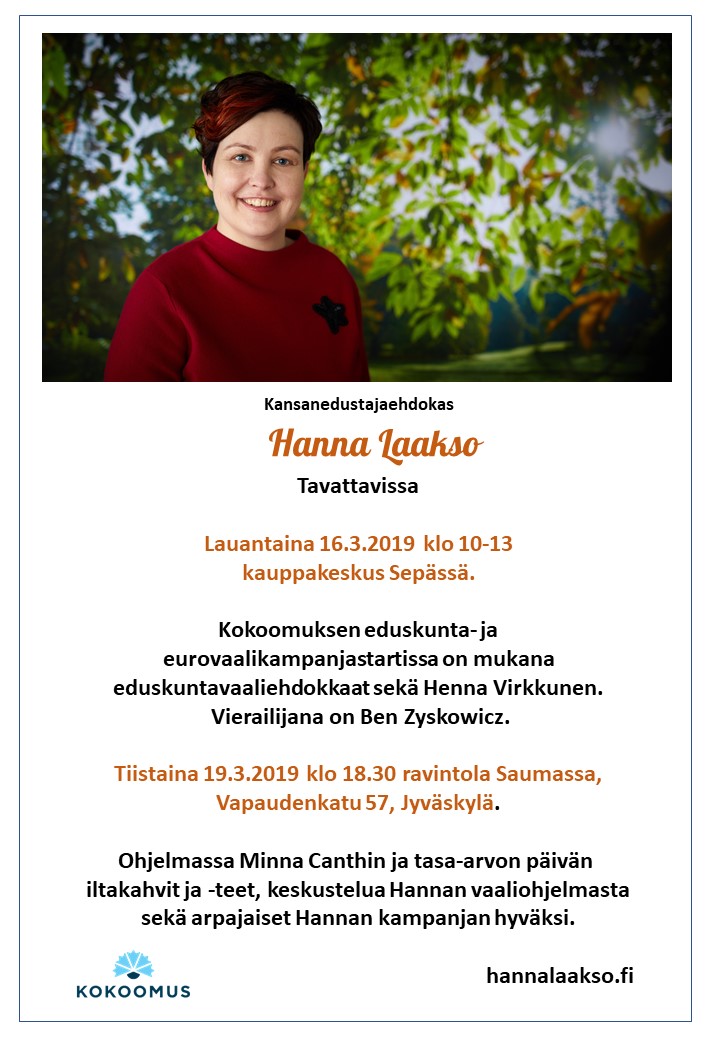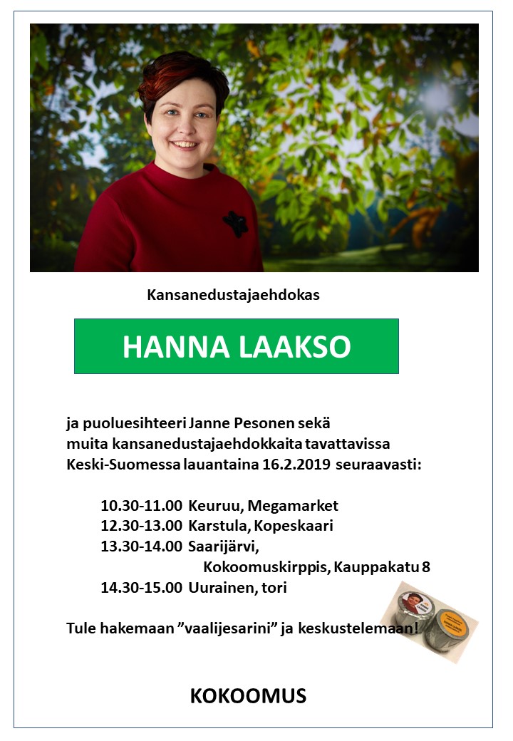 Kansanedustajaehdokas Hanna Laakso tavattavissa