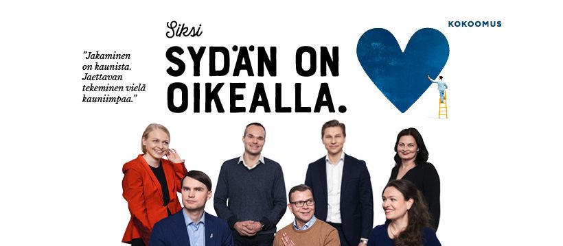 Me emme ainoastaan puhu kauniita ja pyri hyvään, vaan ryhdymme toimeen ja teemme hyvää. Siksi sydän on oikealla. Satoi tai paistoi.